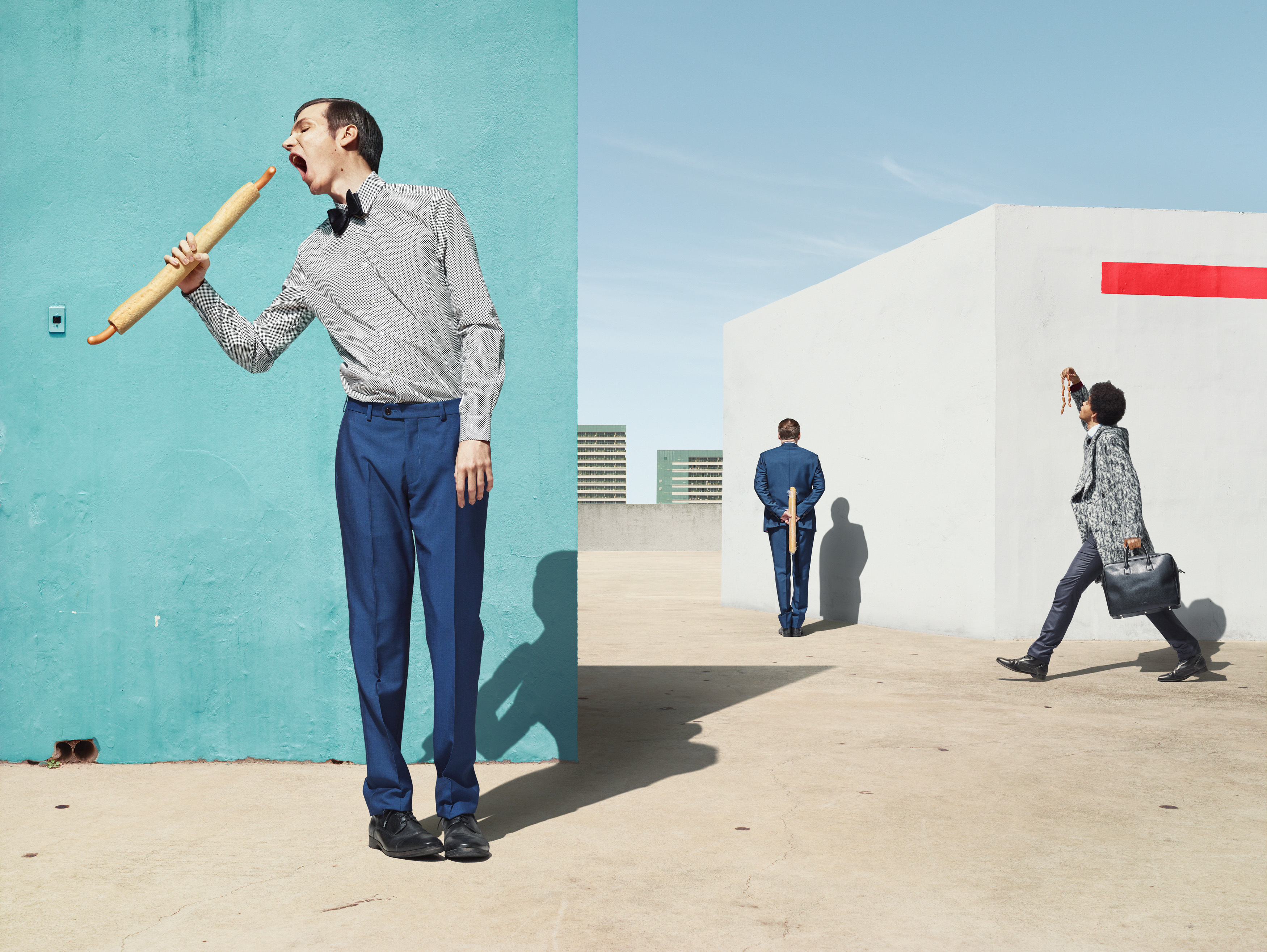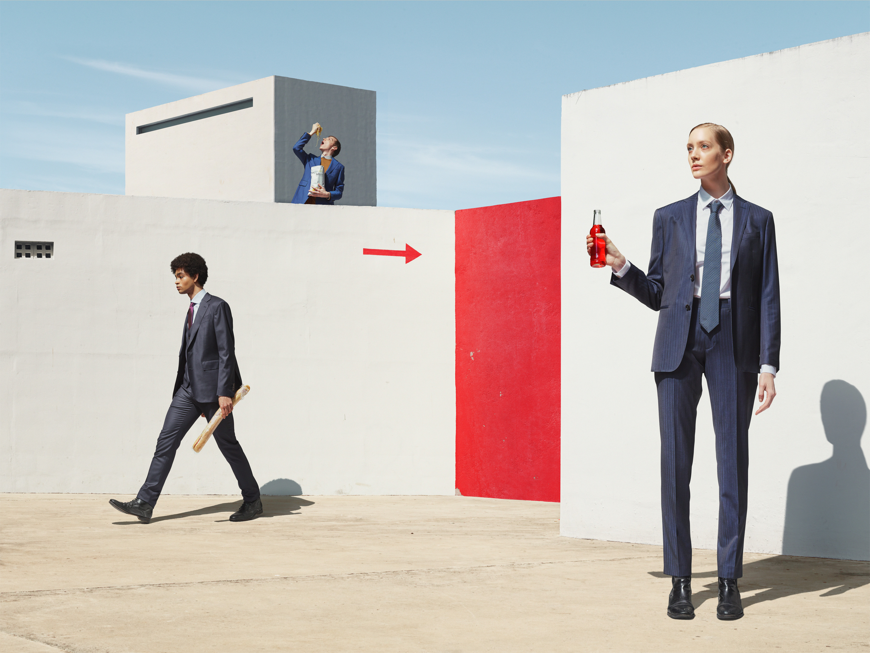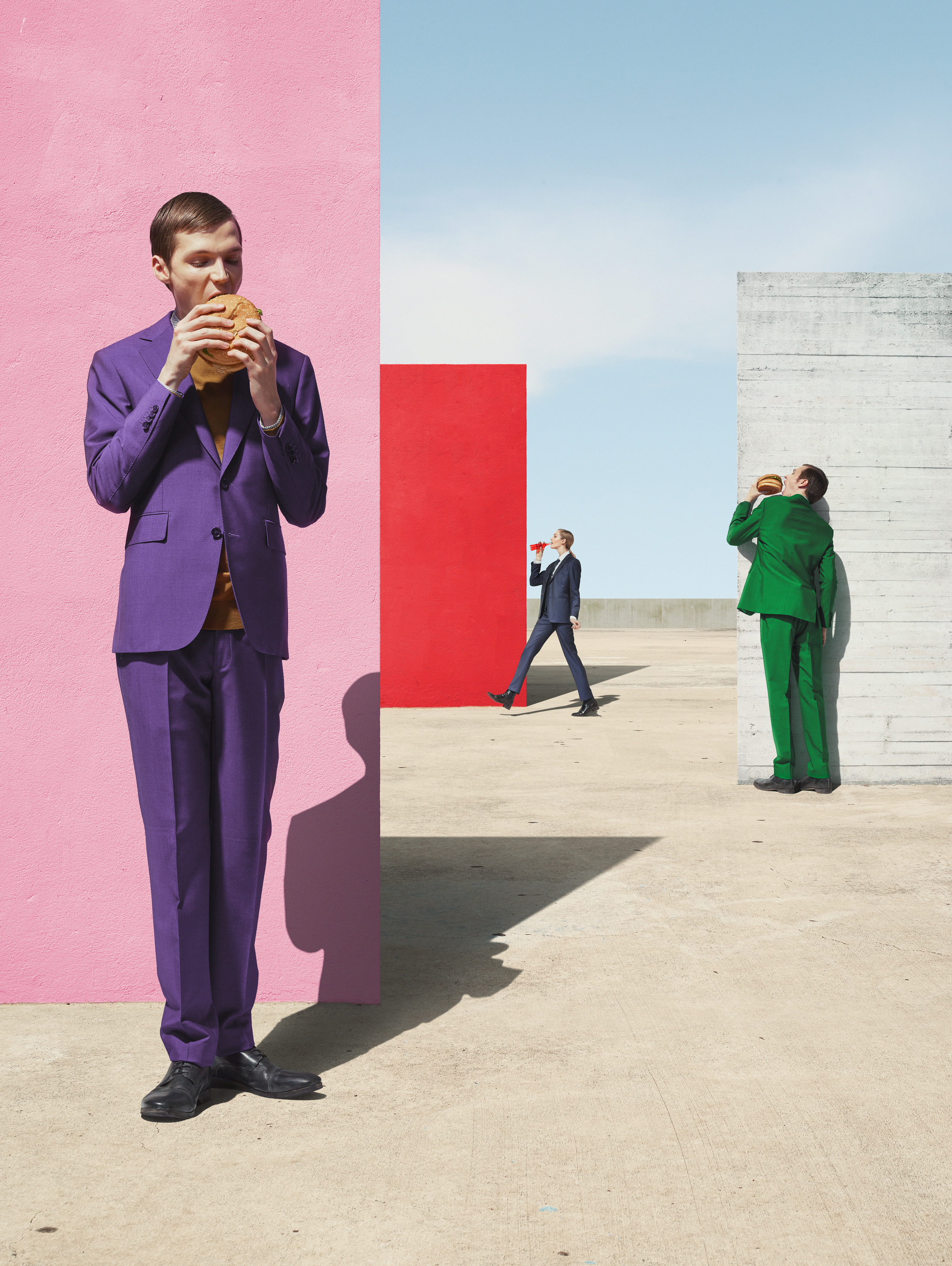 With a certain ironic elevation I explore the relation between past visions of a modernist future and contemporary sociological phenomena. People feeling free within a very limited spectrum of acceptable opinions and generated desires, for which to be satisfied they have to function within the system. As a recurring topic i explore the subliminal effect of colors and repetitive demonstration. Both inherent principals of marketing and advertising they are continuously used as tools of societal control.